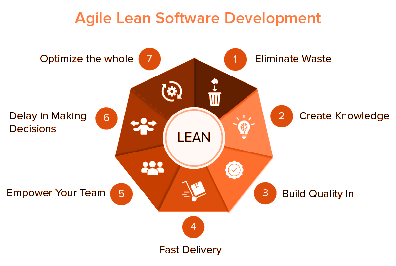 Lean development focuses on eliminating waste, optimizing resources, and maximizing value delivery. It encourages rapid prototyping, user feedback, and continuous improvement to create high-quality software with minimal delays and costs. Lean is ideal for startups and businesses looking for efficient, scalable solutions.