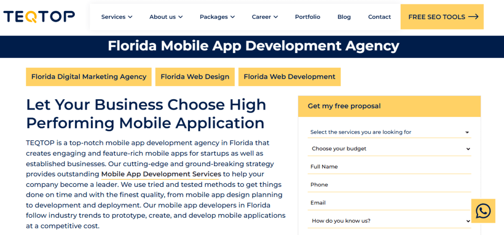 TEQTOP is a mobile app development agency with services for Florida businesses. They focus on clean user experience and practical design choices so apps feel simple and work fast. What sets TEQTOP apart is its strong design-first approach paired with a clear deployment process. They balance creative UI work with careful testing and platform planning so clients get apps that look modern and behave reliably on real devices. TEQTOP also offers flexible packages that help teams pick the right scope and budget for each phase.