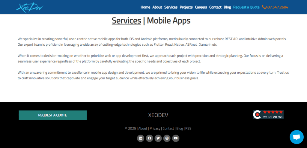 XeoDev is an Orlando-based mobile app and custom software firm that builds scalable apps from day one. We stand apart for our emphasis on clear technical specs and cloud-first architecture. Before we write a line of code, we produce detailed technical documents that map APIs, data flows, and system needs. This makes building predictable and reduces rework. Florida companies that require tight integration between mobile apps, admin portals, and cloud services pick XeoDev for its focus on engineering clarity and long-term platform stability.