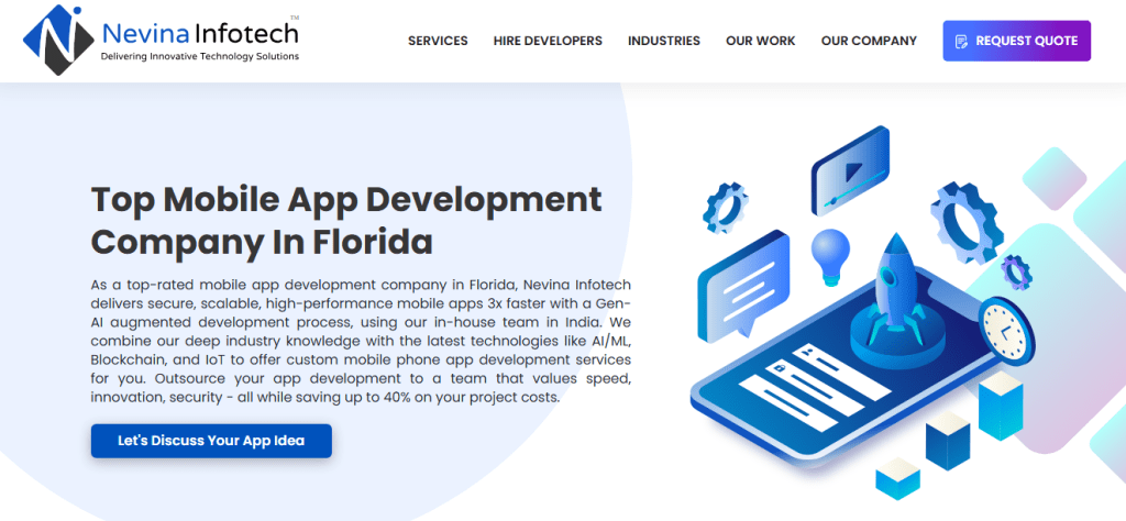 Nevina Infotech is a mobile app development company in Florida that focuses on fast delivery using a Gen AI supported workflow. They stand out for their ability to accelerate development timelines while maintaining a structured, cost-efficient build process. Their approach helps Florida businesses move from idea to development without long delays. The team offers guided planning, technical execution, and post-launch help so clients can manage the full app lifecycle with clarity and fewer bottlenecks.