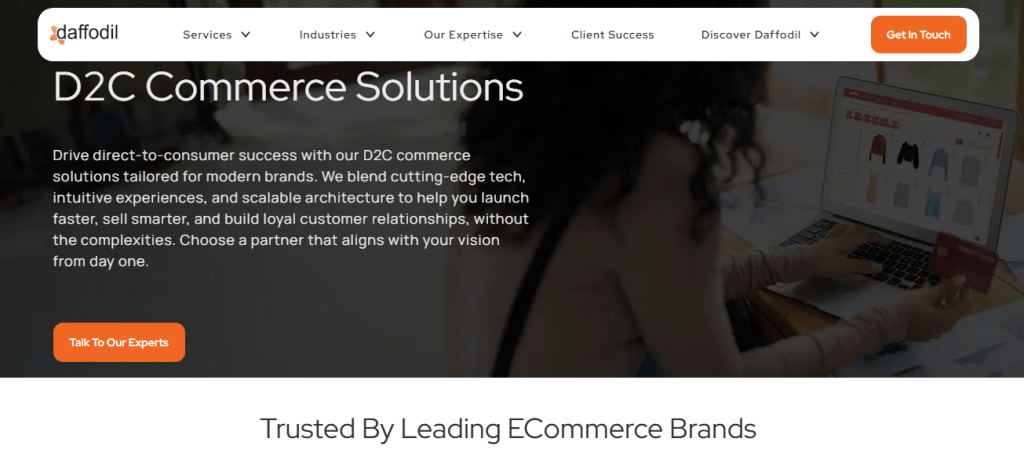 Its services cover product discovery, UI and UX design, D2C platform development, modernization, cloud enablement, and third-party integrations. Daffodil Software suits D2C brands that want a custom-built platform rather than an off-the-shelf solution and need ongoing support as customer expectations and channels evolve.