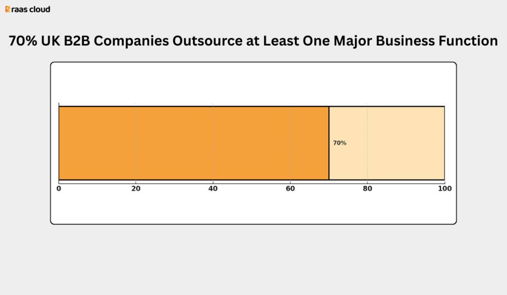 - Seven in ten UK B2B companies outsource at least one major business function, which shows broad acceptance of external service providers.