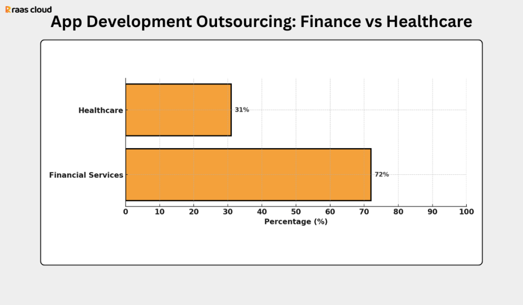 - In healthcare, only 31% of companies outsource app development, which shows slower adoption in this sector.