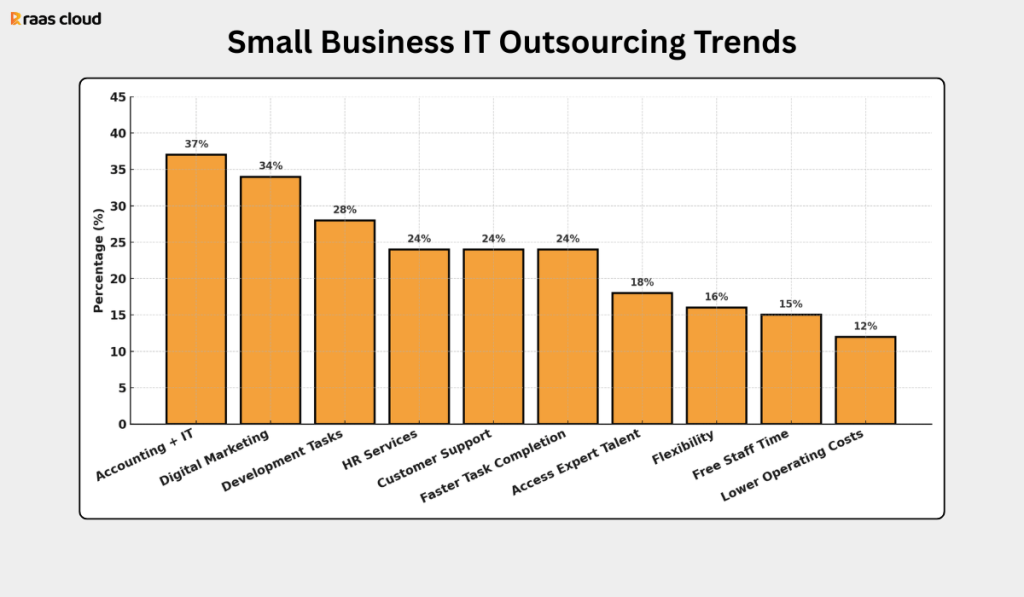 - 37% of small businesses outsource both accounting and IT services because it helps them reduce workload and avoid hiring full-time staff.