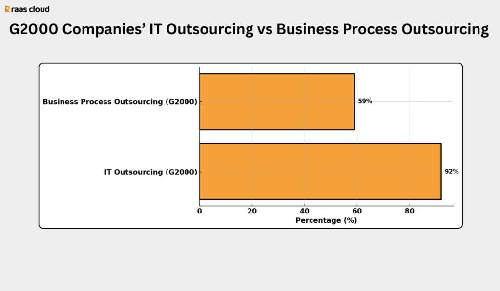 - 92% of G2000 companies use IT outsourcing for core tech needs.