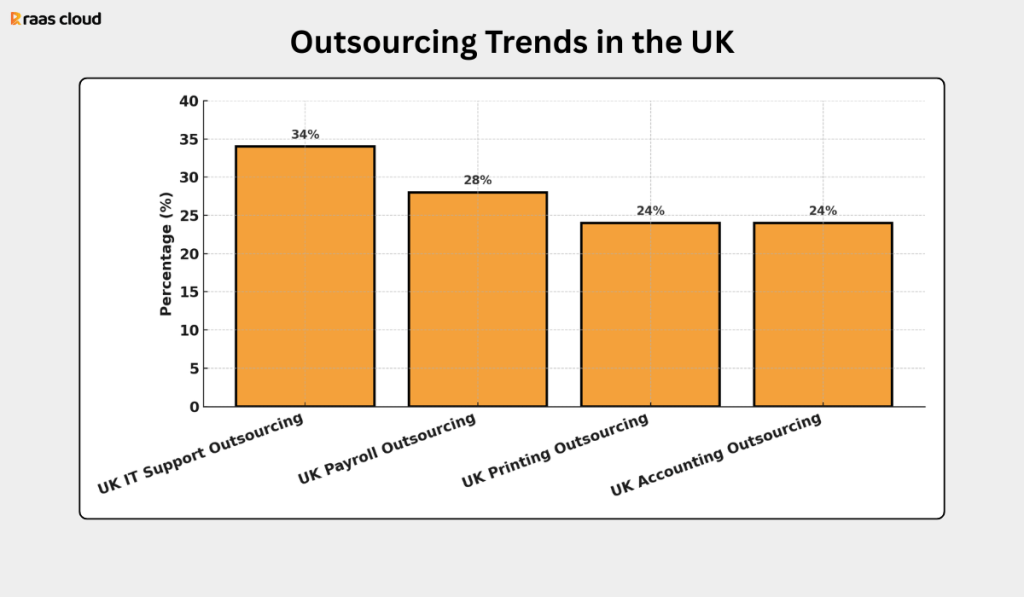 - Accounting services also show a 24% outsourcing rate in the UK, which reflects strong demand for external financial support.