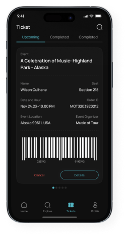 QR-based ticket validation for on-site check-in and fraud prevention.
