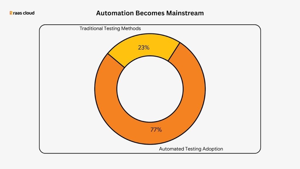 - 77% of companies have adopted automated software testing, showing automation is now mainstream rather than optional across modern development teams.