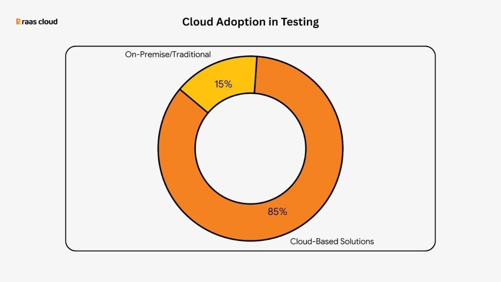 - 85% of organizations use cloud-based test automation solutions, reflecting a strong shift toward scalable, flexible testing environments that support distributed teams and on-demand execution.
